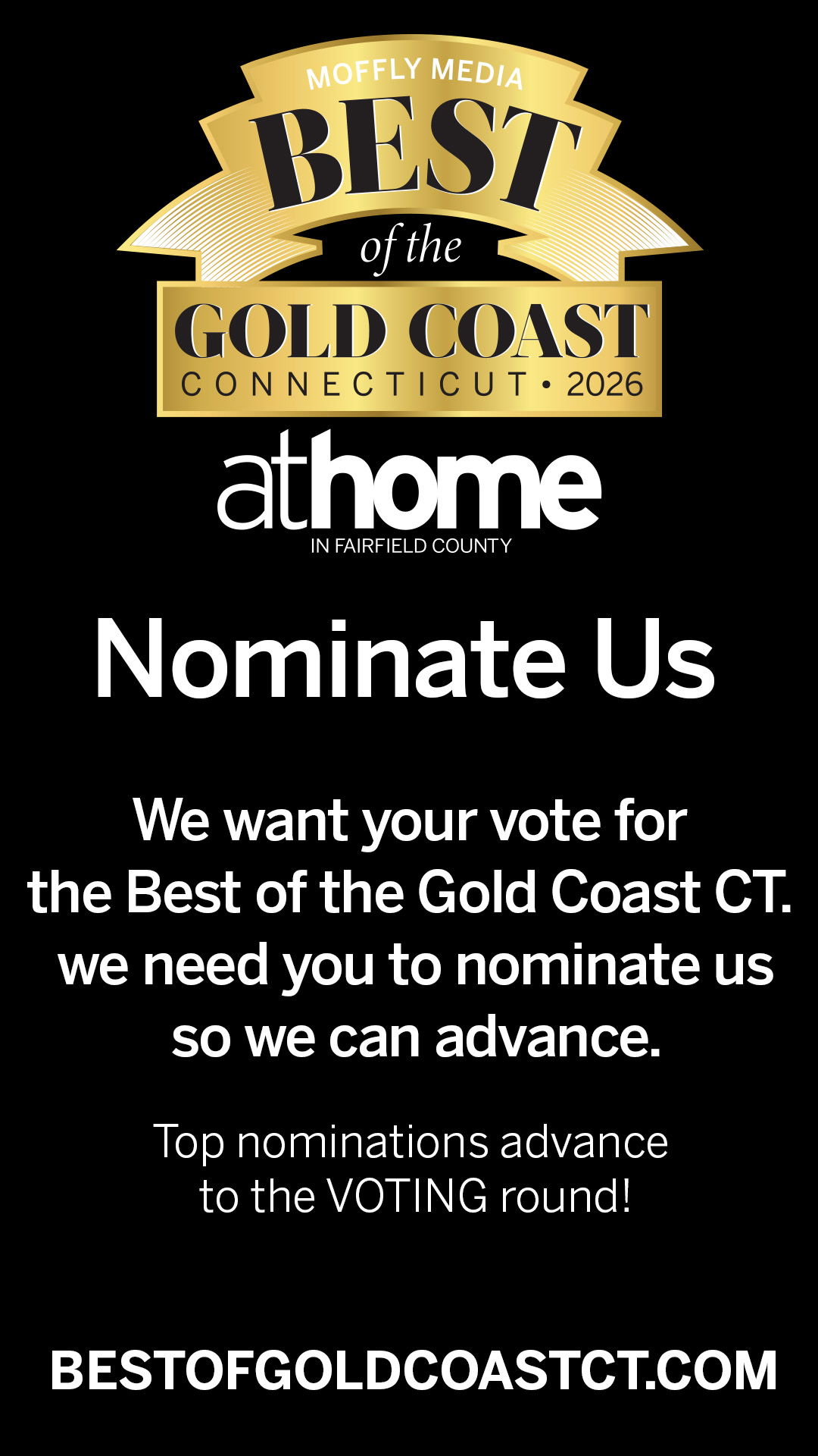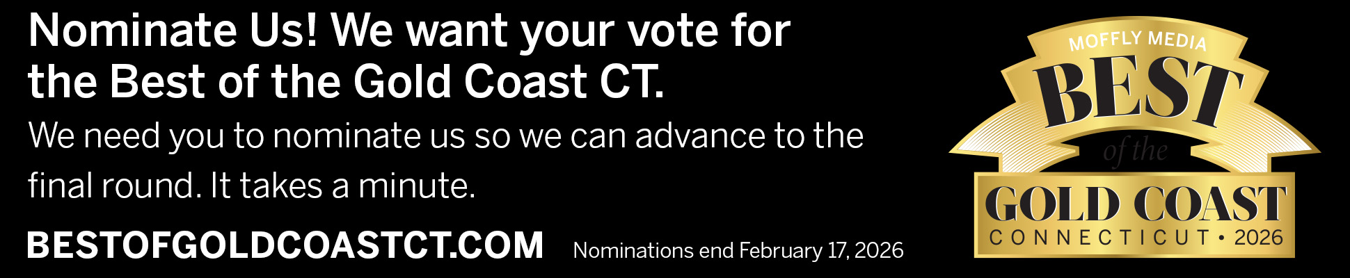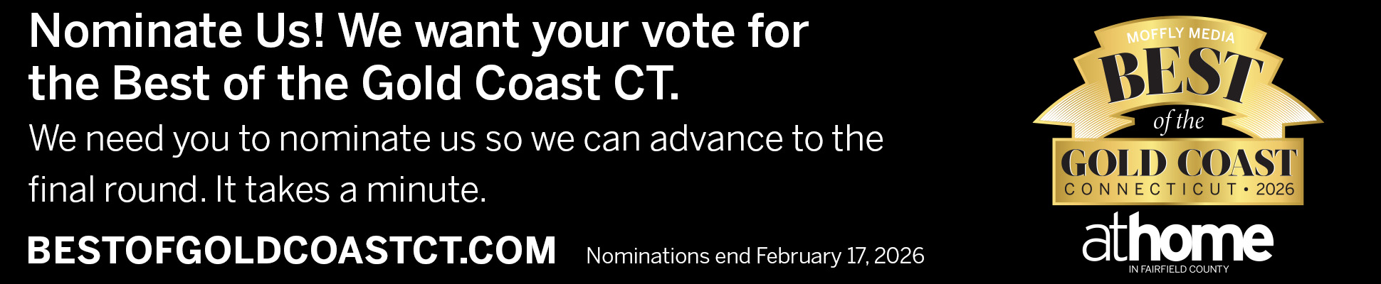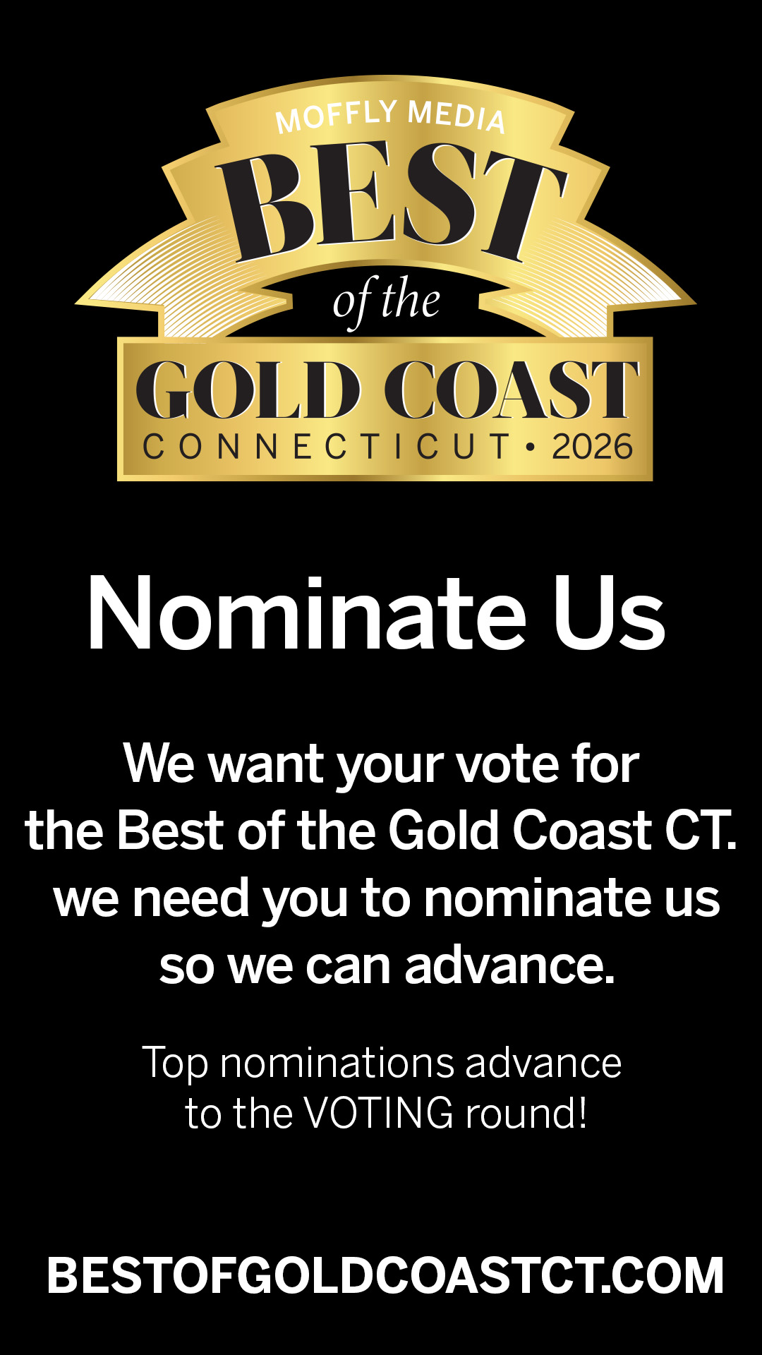 - Ask for them: We created two nomination ads that you can use on your website. Be sure to place one in a prominent position so your customers see it, and then link back to : http://www.bestofgoldcoastct.com/ so they can easily access the ballot.