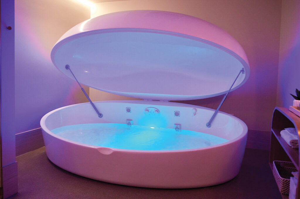 Allow weightlessness to take over while floating in 10 inches of body-temperature water mixed with Epsom salts, and feel pain and stress start to melt away. Floating helps with mood regulation, increased circulation and can even help mitigate headaches.