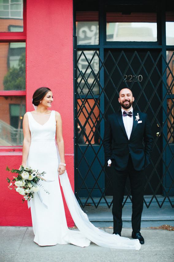 The couple had been dating for about six-and-a-half years before they became engaged while out for a walk in their new home city of San Francisco. The bride’s brother, Harrison Oztemel, officiated at the ceremony on the rooftop of The Pearl in San Francisco. The couple had everyone laughing and crying when they shared their personal vows. Another highlight of the night was when Alexandra and her father, Gary, sang “Ain’t No Mountain High Enough” with the band.
