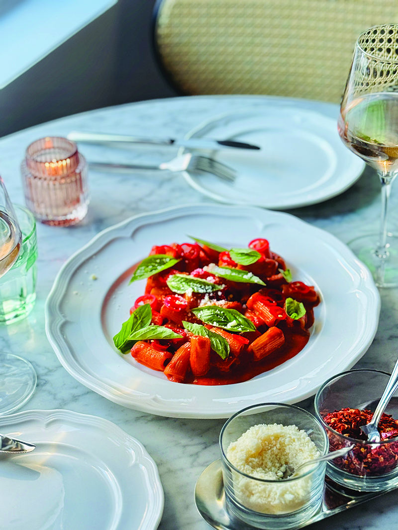 above: Fresh herbs are plentiful on the pastas and pizzas.