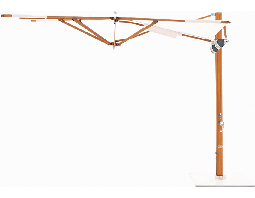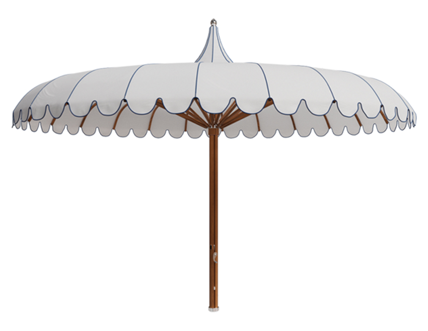 “The OG of outdoor umbrellas with an upgraded, weather- resistant faux teak finish.”