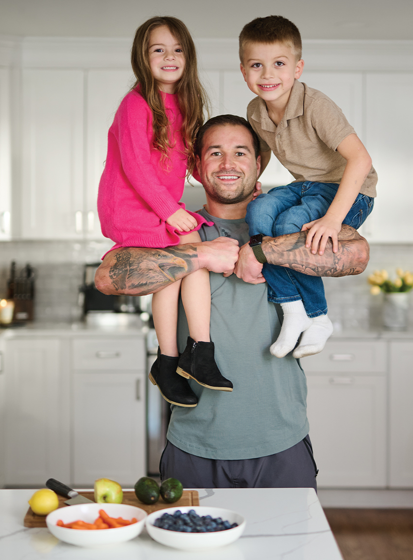 At home, he is busy setting a good example. “My kids love to go on walks with me. We walk in the woods,” he says. “They get so pumped up when I say, ‘We’re going on a walk!’ My daughter wants to eat the same thing because, ‘Daddy is doing it.’ Kids will do what we do, not what we say.” His son does jiu-jitsu five times a week and competes. His daughter just started as well and does gymnastics. They like to join in their mom’s workouts in the basement gym. Does Ambrogio plan to instill in them the same work ethic his dad taught him? The answer is a resounding: “Absolutely!”