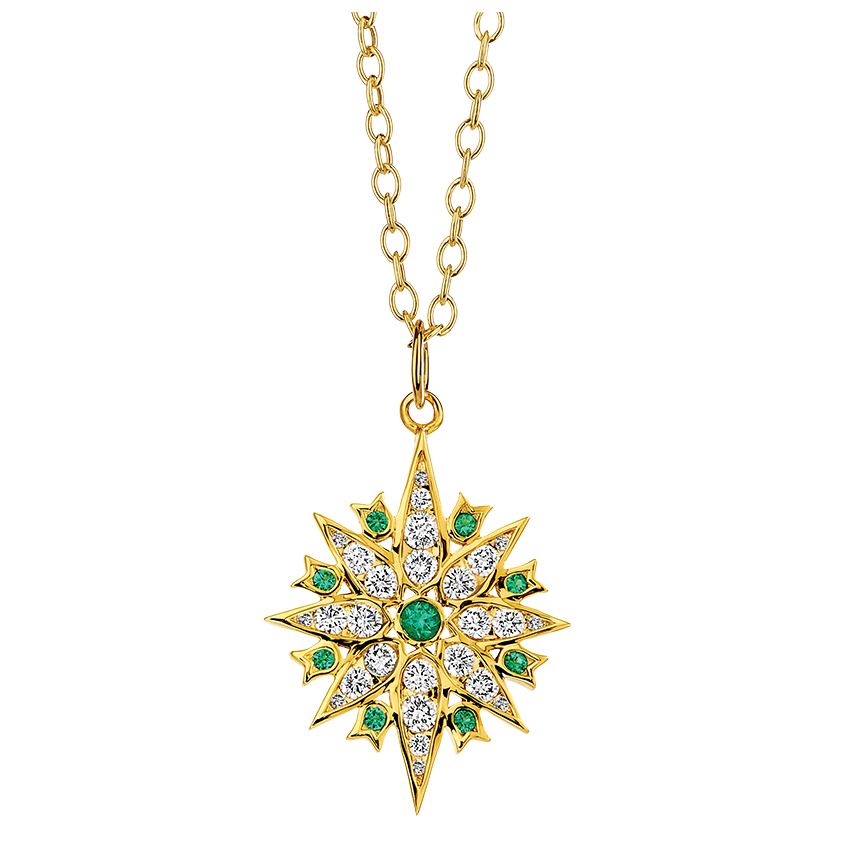 18K Yellow Gold Emerald and Diamond Pendant, $3,650,