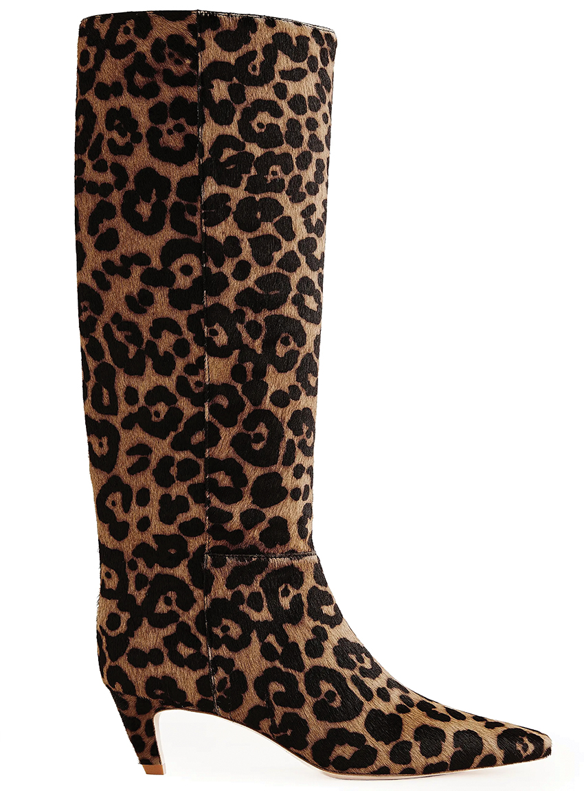 Leopard-Print Leather Knee-High Boots, $498,