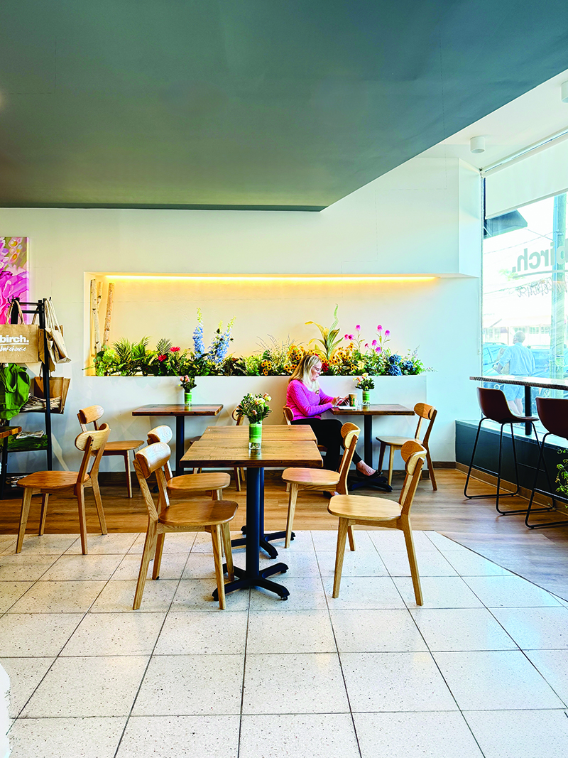 The aroma of Caffe Vita Roasting Company’s coffee draws in many customers. Daina and her husband tasted their way through New York City coffees before concurring that Caffe Vita’s smooth espresso and drip coffee was the one they wanted to serve. Caffe Vita roasts the beans in Brooklyn, and the team there trained Birch’s staff on how to pull espressos and create classic and specialty caffeinated drinks.