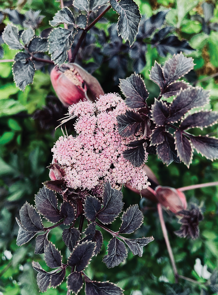 ABOVE: A few of the beauties in Amber’s garden: Calendula, Echinacea, Angelica, Dahlia