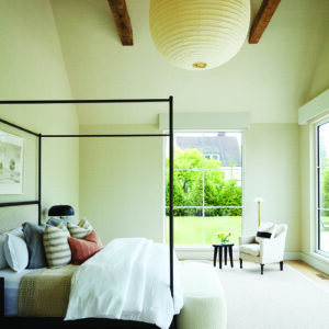 The beautiful thing about this house is that everything has automatic shades tucked into the valances. You don’t see them at all, but then you can change the whole dynamic of the house, depending on the light. I’m a big fan of as little window shades as possible, especially if you’re not facing the neighbors, because the beautiful space should be enjoyed as much as possible. There were multiple layers that went into the shades, with solar shades and blackout shades. It’s a real special feature.