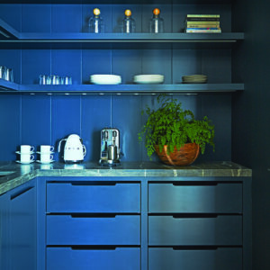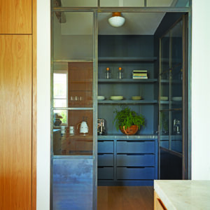 Each little section is a section unto itself. If you can create that den that would be standalone on the first floor, it makes it much more special than if it were left white like the rest of the house because it’s like you’re entering into this darkness. That’s why she chose it. The pantry is similarly dark. She asked me about the pantry because we had all that oak and I thought it should’ve been darker. It makes it like a little jewel box, and I think that this paint in there is cool. You get to see it because of the steel doors, but it doesn’t jump out at you. It recedes.