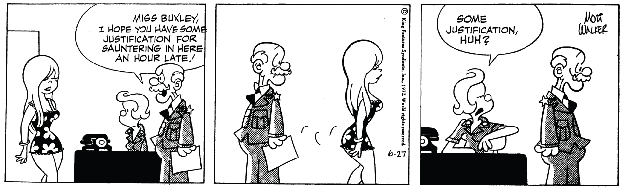 Mort understood the problem of harassment in the workplace—the Miss Buxley uproar hastened this understanding—but he was in the human foibles business. His characters were not supposed to be paragons of virtue.