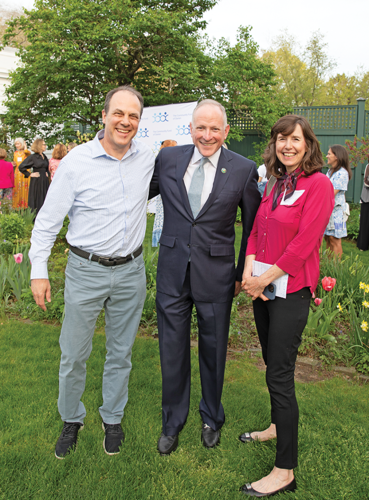 The Darien Foundation’s Ward Glassmeyer and Sarah Woodbury with Darien First Selectman Jon Zagrodzky (center)
