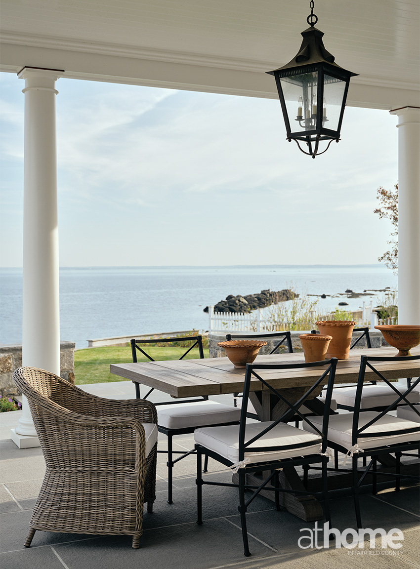 Even though the kids were out of the house, they were very much part of the weekend plans. And the family loves to entertain. We really put their lifestyle into every span of the house. You can see there’s that beautiful outdoor seating, overlooking the water, and it’s a very large dining table.