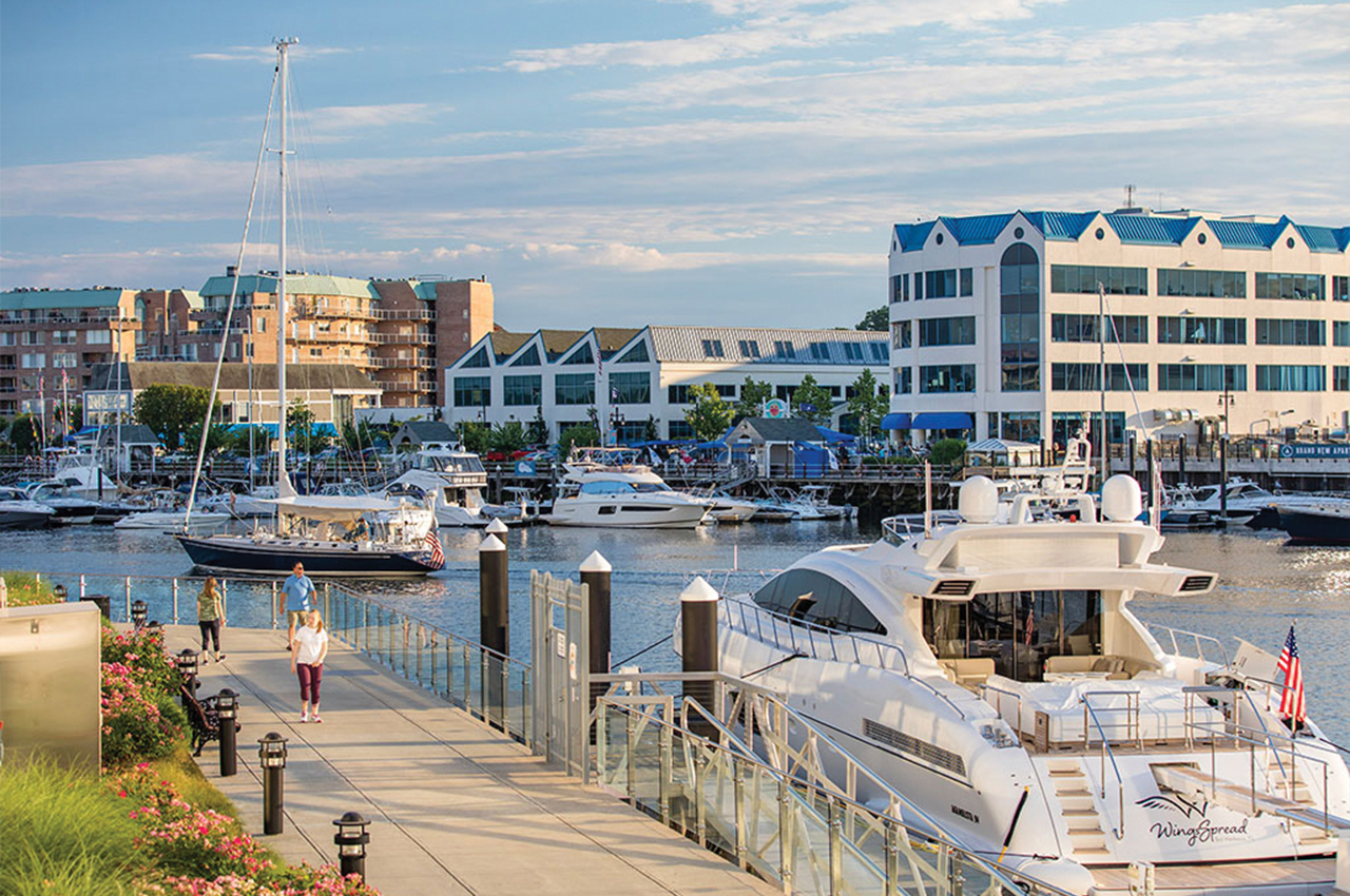 Harbor Point owns four marinas. For slip assignments, they monitor communications on marine Channel 9 on VHF radio. Boaters can also call 203-355- 6045 to check availability (no reservations). There’s a three-hour docking time limit (at cost of $1 a foot). harborpointmarinas.com
