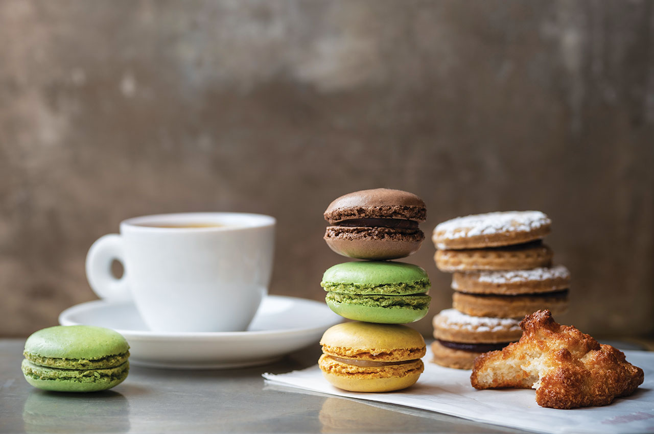 With everyone’s sweet tooth sated, we considered passing on the European cookies. We’re glad we didn’t. Among the selection are Sarah Bernhardts, dark chocolate coating a mini dome of buttercream sitting on crunchy almond meringue. The dainty macarons in shades of pale pink and pistachio are not only light with a just-right amount of filling, but they are also adorable. Here’s a tip: Order a mix of these along with a combination of lace cookies, almond sticks and coconut macaroons, and savor them for days.