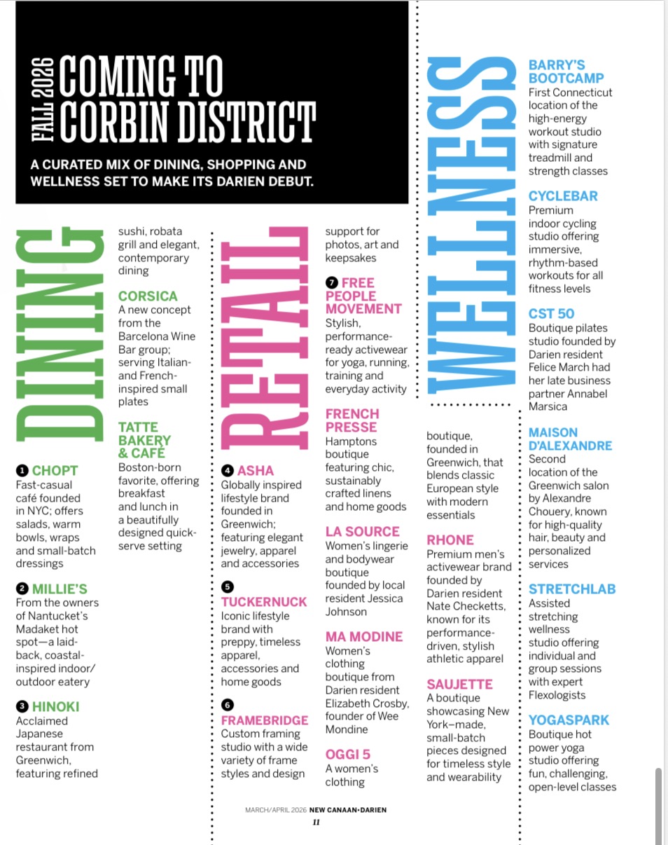 A CURATED MIX OF DINING SHOPPING AND WELLNESS SET TO MAKE ITS DARIEN DEBUT.