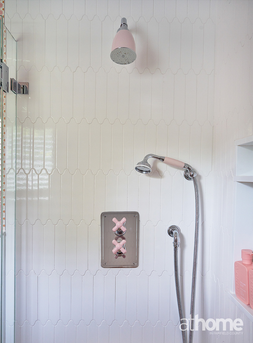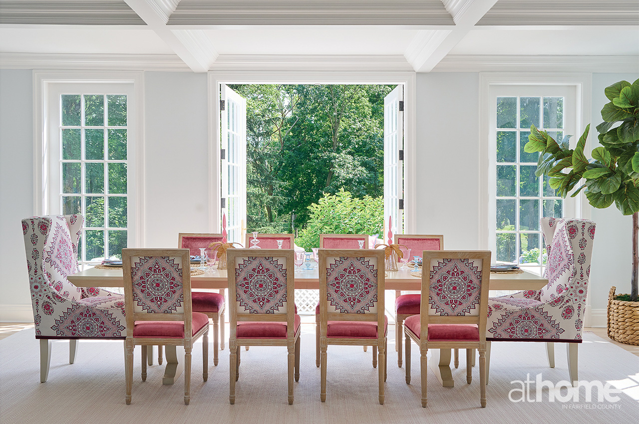 We loved doing the accessories for this house. It was so much fun. I went to Found in New Canaan, and the owner let me into the basement, and I just went crazy down there, finding ice cream bowls and things like that. We bought vintage glassware and then sourced pieces from all over; all the pink things.