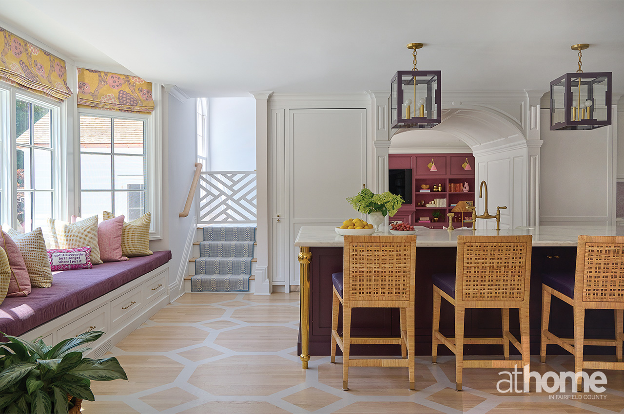 It’s obviously a lot of fun with all the color, but the original layout had the breakfast table in the bay window, and she really wanted a big seating area. They entertain a ton and are always having people over. It was important for her to have a lounge area in the kitchen where people could sit and have a cocktail while talking and hanging out. We also created that whole breakfast bar, which became an extra serving space.