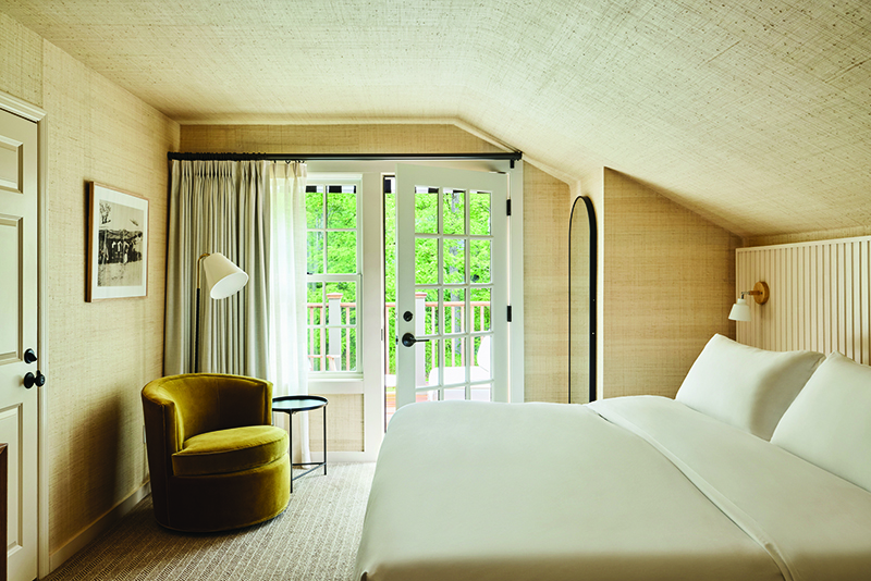 A short walk from the main house across a sweet stone bridge that spans the Webatuck River is the Benton House (renovated in 2021), with 13 guestrooms, each with a private balcony or terrace. The adjacent Benton Cottage (dating from the 1700s) has four rooms and is ideal for a family or a group traveling together, as is the Garden Cottage, which overlooks the resort’s clematis-lined walled garden.