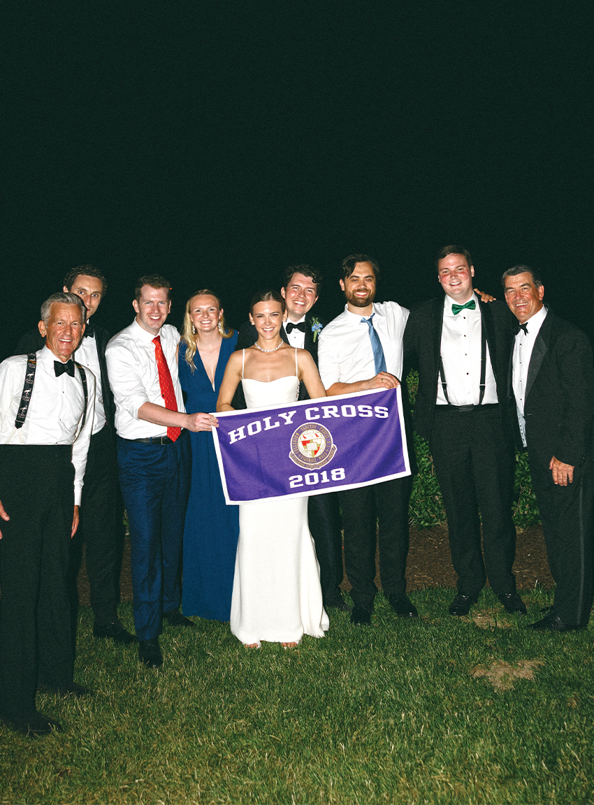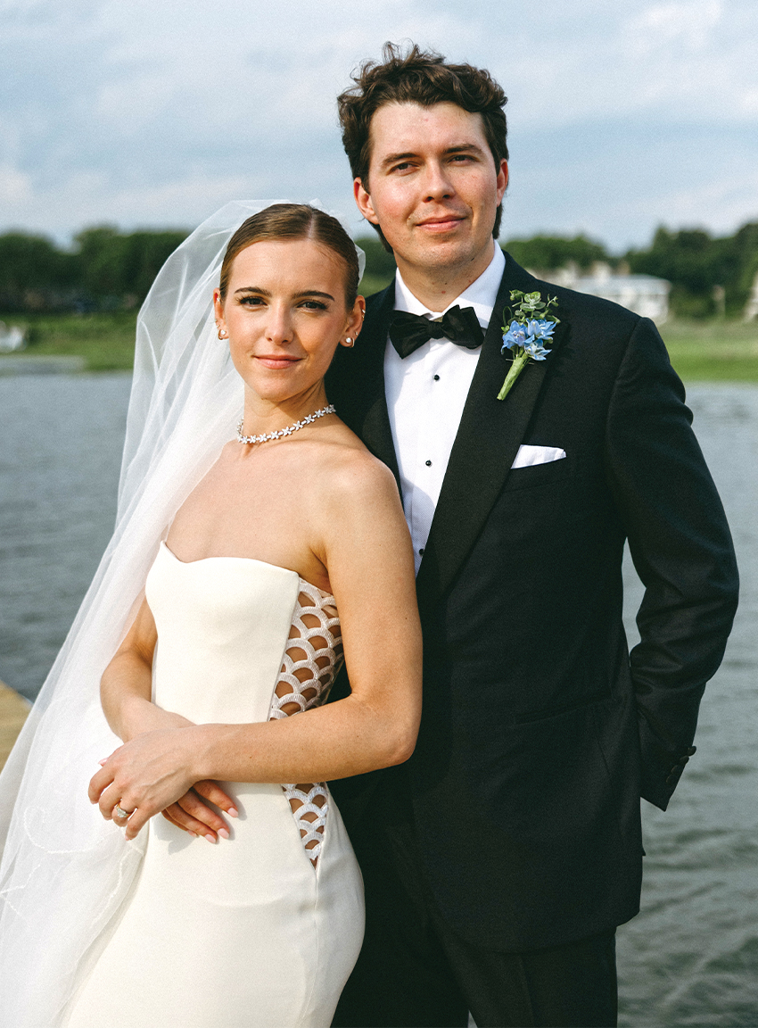 Rev. Patrick Collins officiated at the ceremony at Riverside Yacht Club, where a reception followed. At the end of the night, the newlyweds exited the club through a tunnel of sparklers held by friends and family and boarded a boat with champagne in hand.