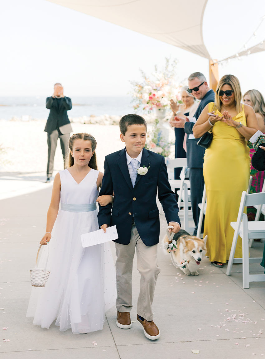 Not even a pandemic was going to stop these two from falling in love. Claire and Jared met at the Old Greenwich Social Club (now Bosco’s Bar and Grill) during Covid. They dated for threeyears before becoming engaged. Claire and Jared had discussed the idea of marriage, and she knew a proposal was on the horizon. So, when Jared asked her to go for a harbor cruise, she figured it was happening. But as it turned out, Jared chickened out after his twin brother jokingly warned him not to drop the ring in the water. He ended up proposing the following evening in their kitchen, surrounded by their three beloved dogs.