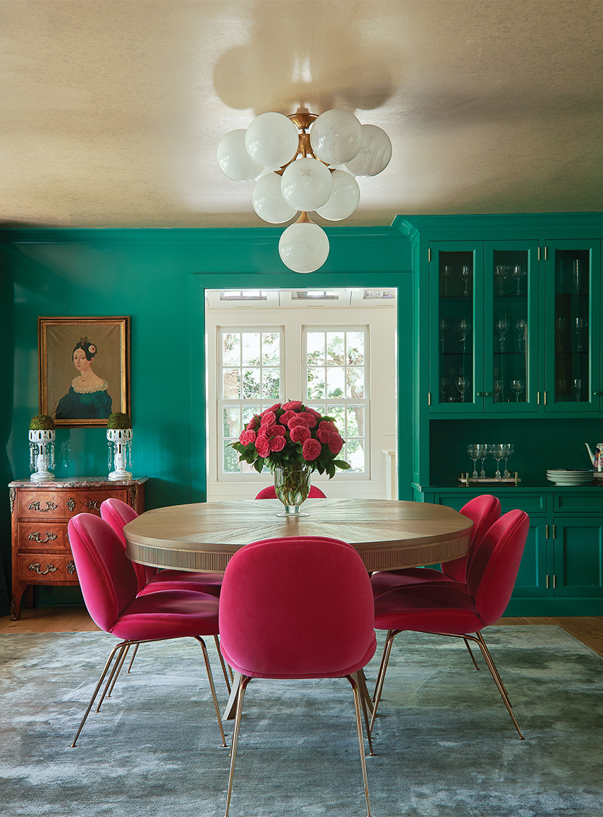 “Color in abundance becomes a neutral,” Bow says. “It’s as serene as serene can be. It happens by layering combinations of color in abundance. You don’t accent something unless you want it accented. Trim is out. If you do the walls gray and the trim white, you’re accenting trim. Why? If you have beautiful molding and you want to bring attention to that, do it, but in a kitchen, maybe the cabinets are one shade of green, the walls are another shade of green, maybe there are four or five shades of green, and that makes the color become neutral.”