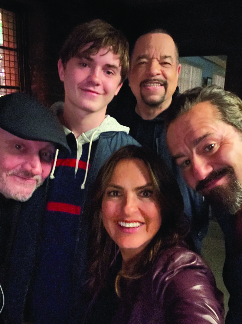 Juan Campanella, Cameron Mann, Ice T, Max Casella and Mariska Hargitay pose for a selfie on set.