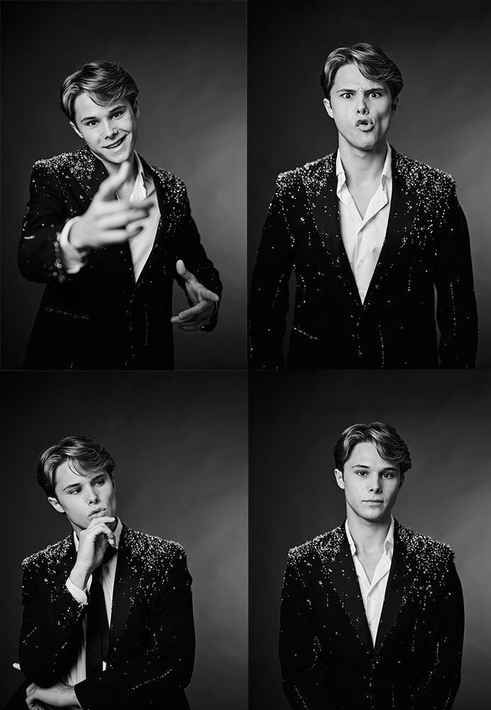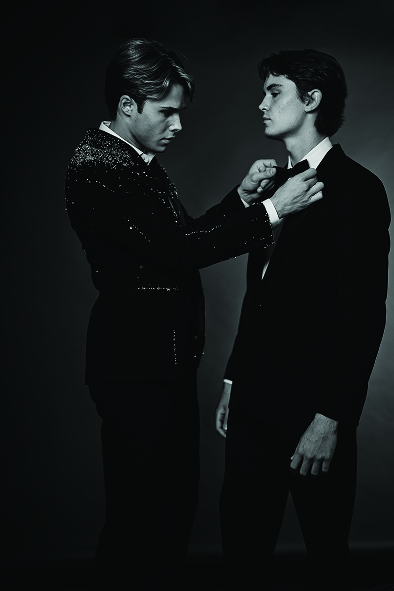 There was one Monday (Jamie’s only day off from his eight-show-a-week schedule) over the summer when they both could be in Westport to treat us to their best impersonations of Hollywood stars, in their family’s living room turned photo studio. Jamie wore the blazer his sister Zoe (freshman fashion design major at Pratt) bedazzled for him for the Stranger Things premiere and Cameron donned the tux Celine gifted him for Cannes. It was a touching crowning moment for a couple kids who grew up in our pages and now, as young men, have earned a cover.