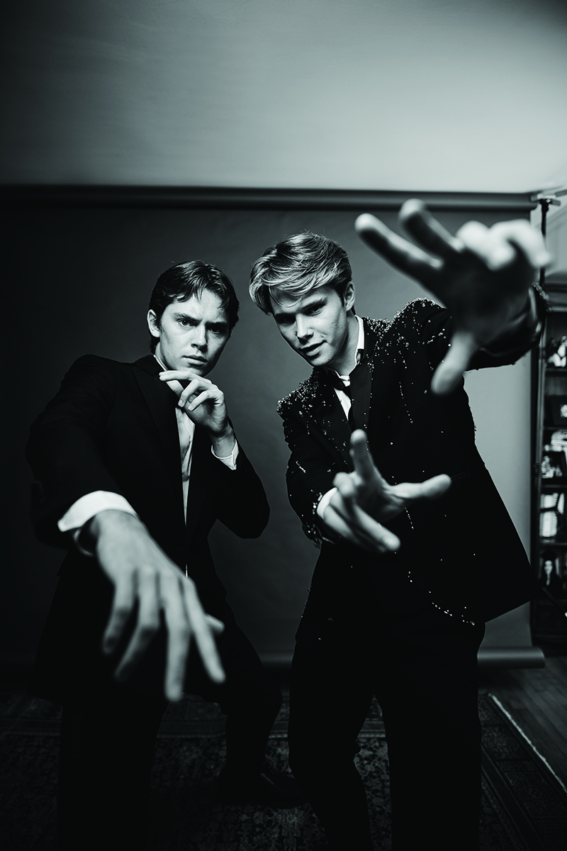 above: dynamic duo Cameron (left) in the tux gifted to him by Celine for the Cannes Film Festival and Jamie (right) in a blazer bedazzled by his sister Zoe for the Broadway premiere of Stranger Things: The First Shadow.
